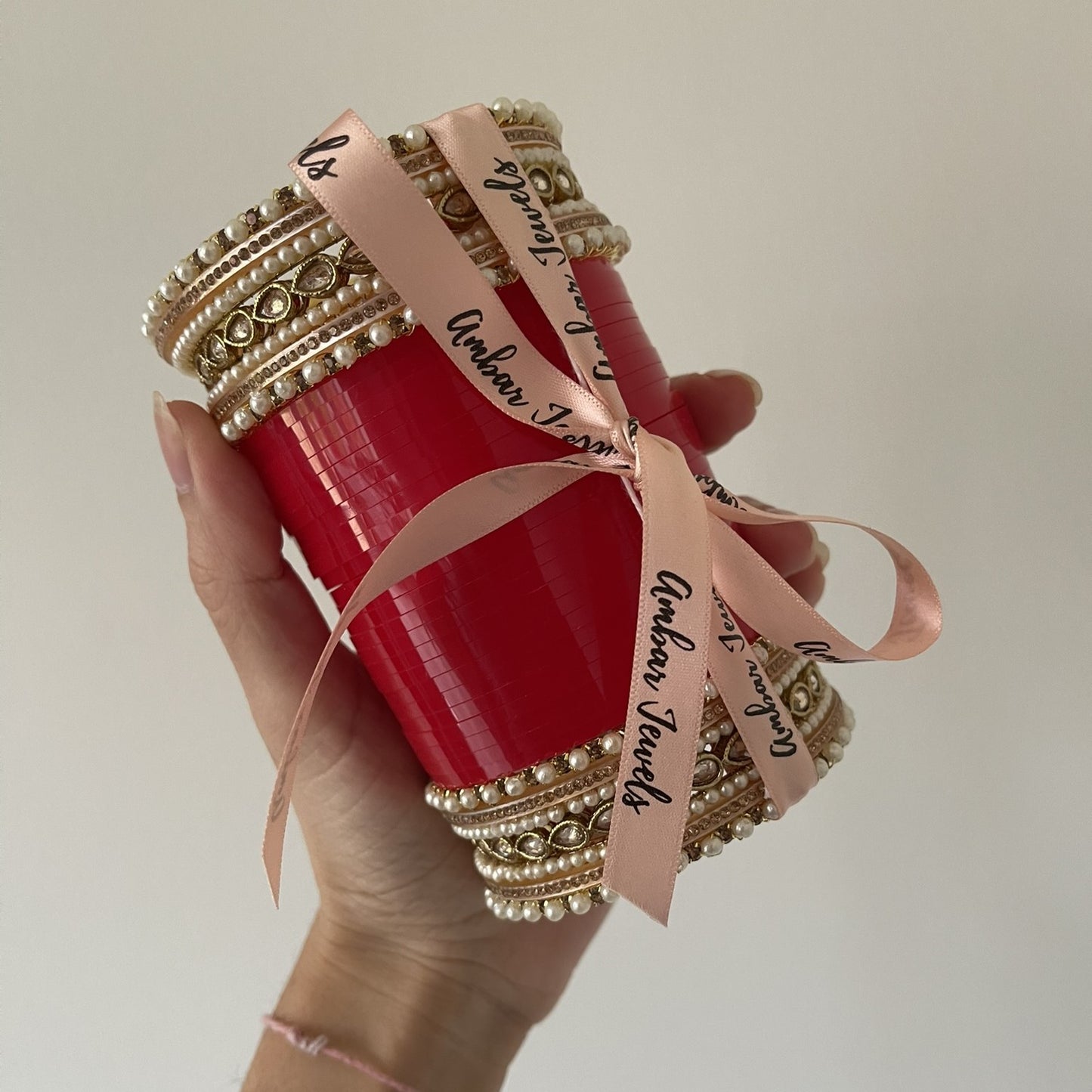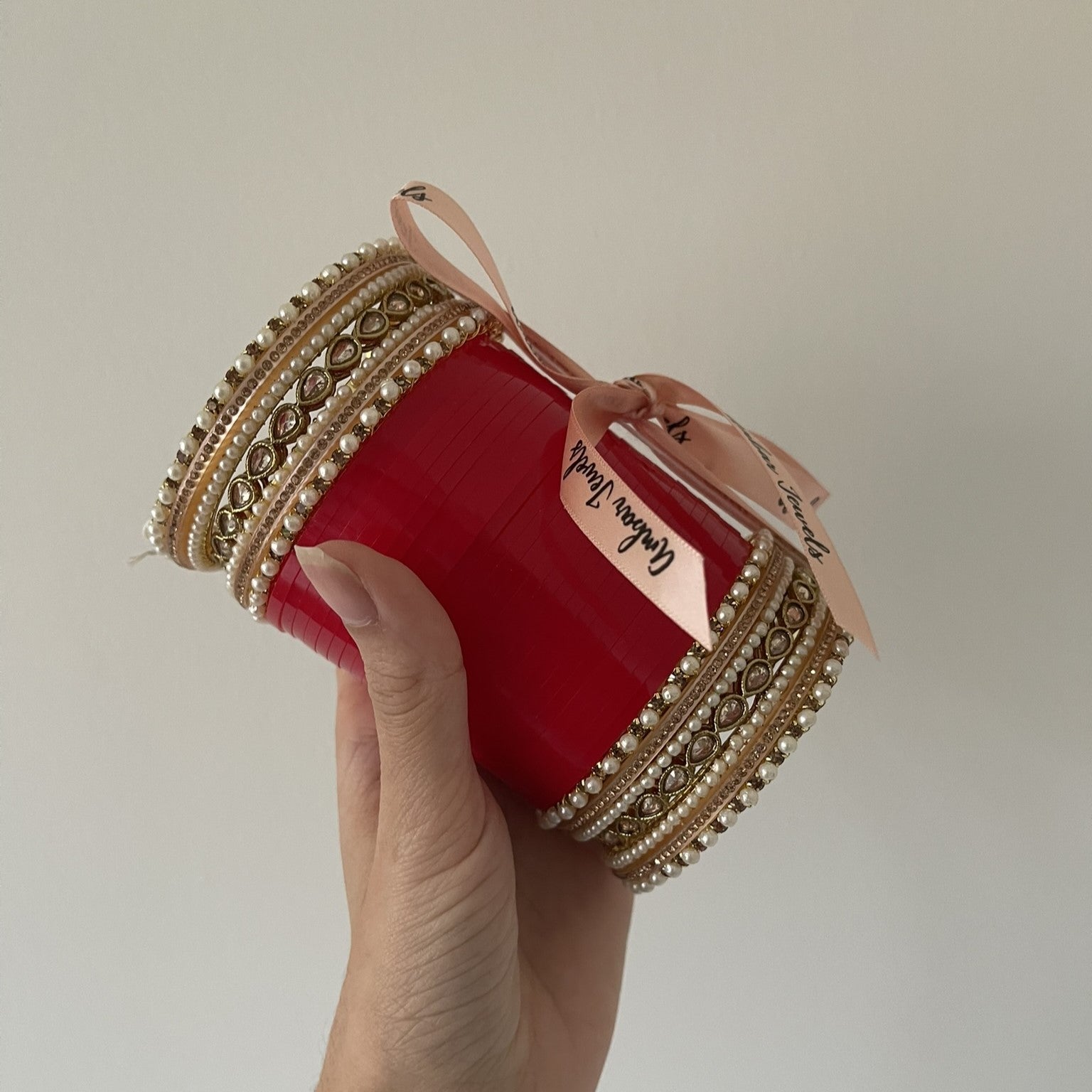 This modern style choora comes in Red and is ideal for individuals who are looking for a unique look for their big day.