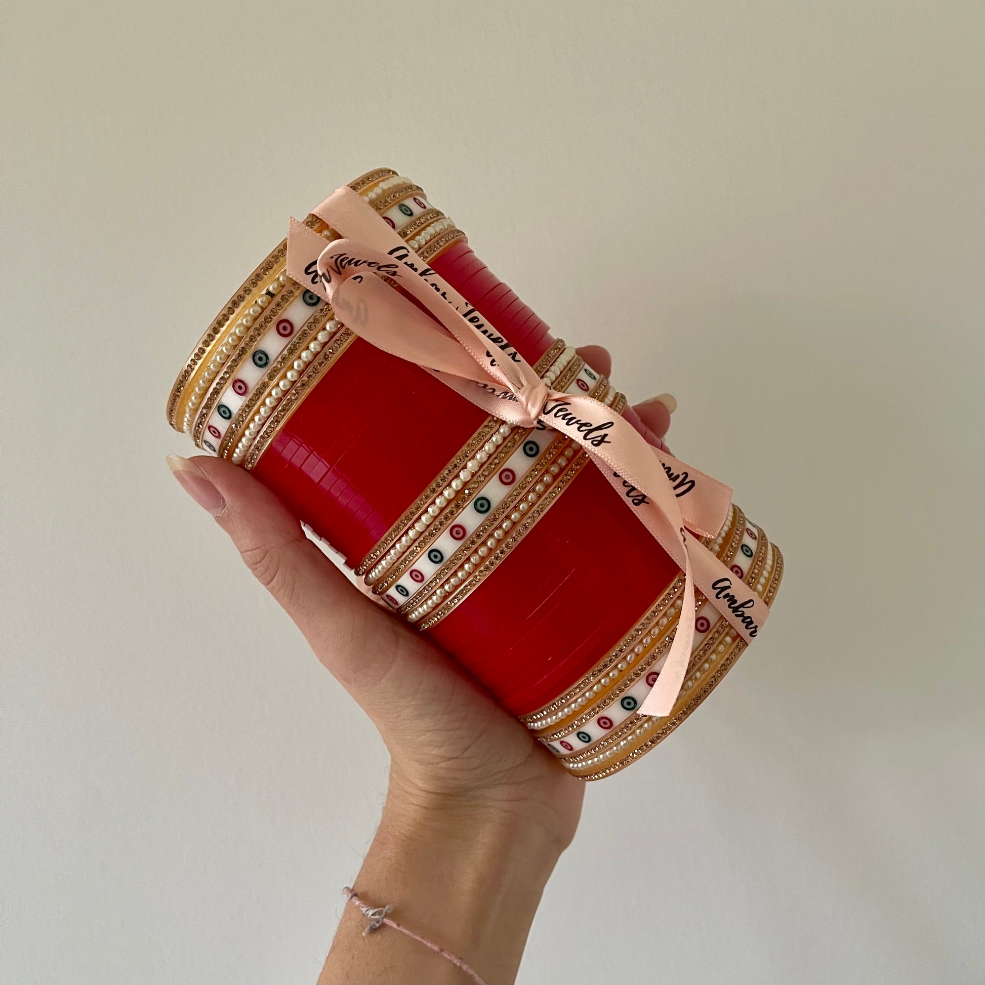 This modern style choora comes in Traditional Red and is ideal for individuals who are looking for a traditional look for their big day.