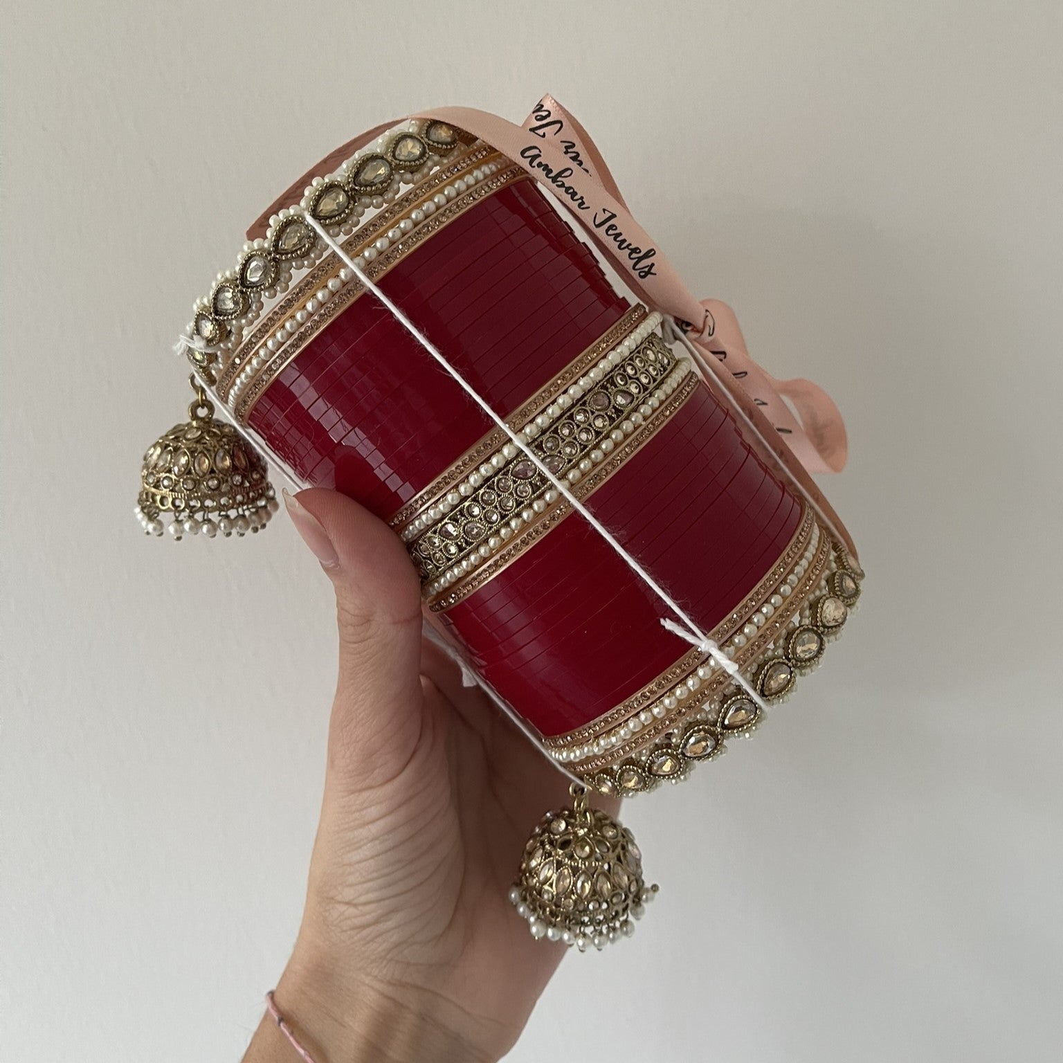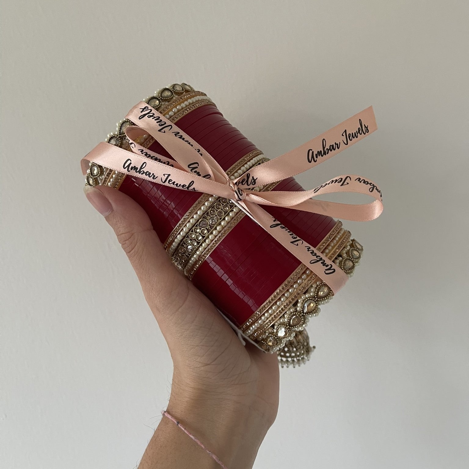 This modern style choora comes in Cherry and is ideal for individuals who are looking for a unique look for their big day.